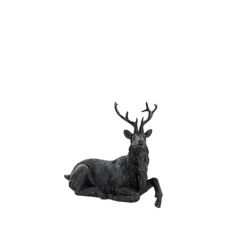 Magische Weihnachtsfigur, die wie ein Rentier aussieht. Die Figur ist schwarz mit viel bezauberndem Glitzer.