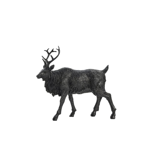 Magische Weihnachtsfigur, die wie ein Rentier aussieht. Die Figur ist schwarz mit viel bezauberndem Glitzer.